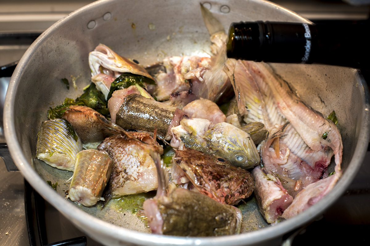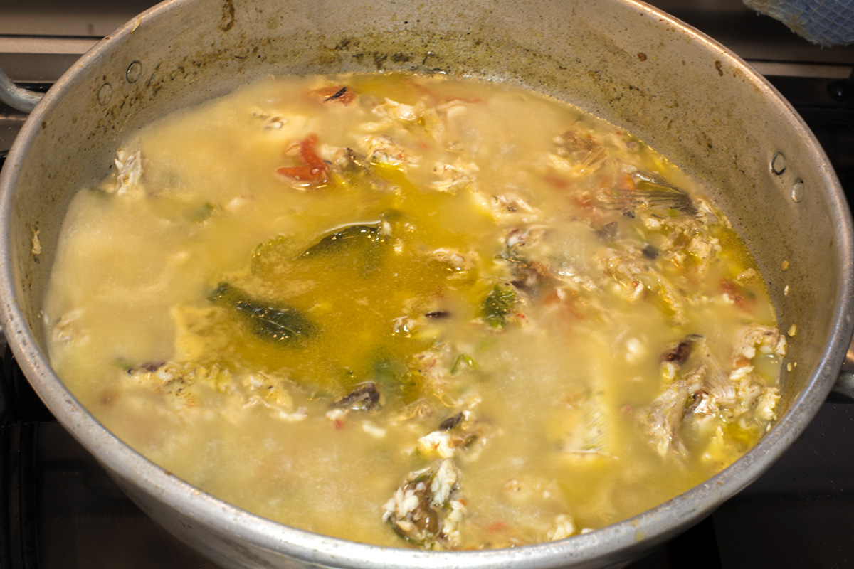 Bene, cominciamo con l’acquisto della materia prima freschissima… diffidate di chi fa l’elenco dei pesci che devono essere presenti nella zuppa perché il mare non è un supermercato e, a meno di mangiare pesce con varie datazioni, si devono fare i conti con il pescato del giorno.