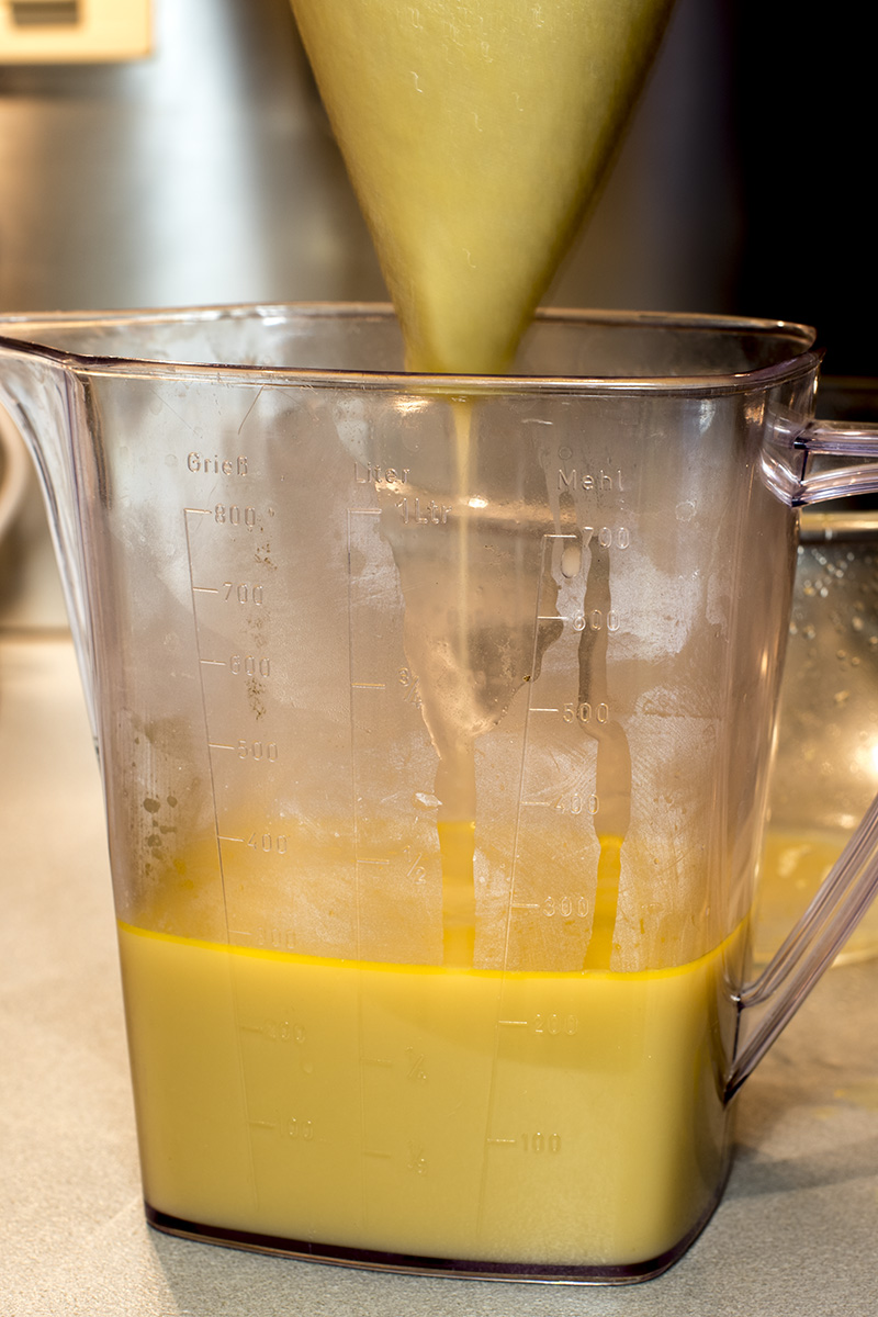 … si macina il tutto e poi lo si filtra ulteriormente in un fine setaccio. Lasciamo in caldo e dedichiamoci ai nobili filetti…