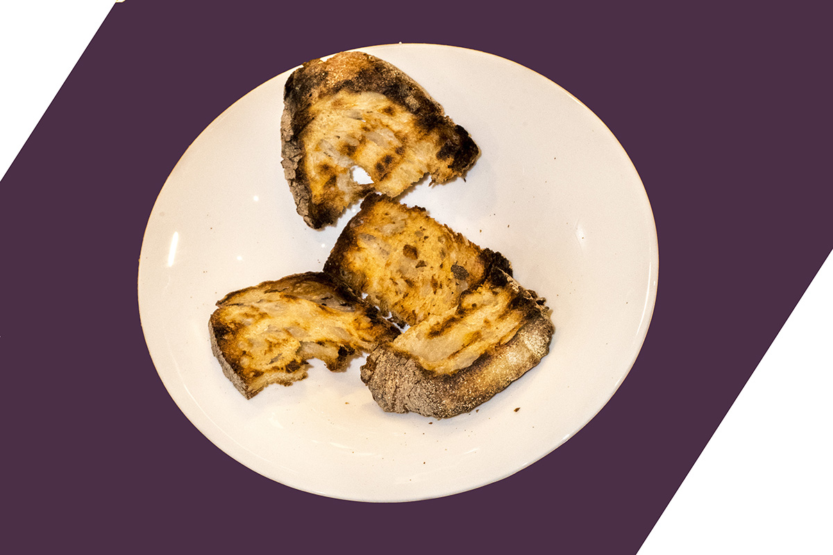 Avremo, intanto, il tempo di preparare qualche crostino di pane abbrustolito che sistemeremo su fondo e bordo del piatto…