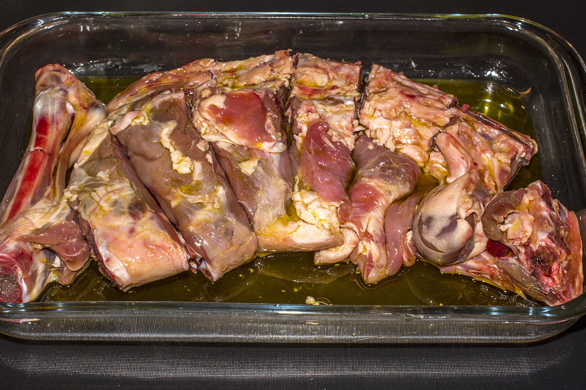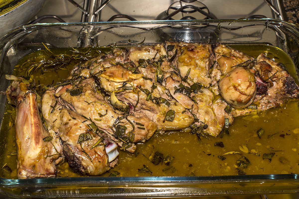 Eccolo!… l’agnello pasquale, così come è giunto e così come è stato posto nella pirofila, anzi… “in pirofila”… visto che siamo in tema di deroghe alla grammatica…