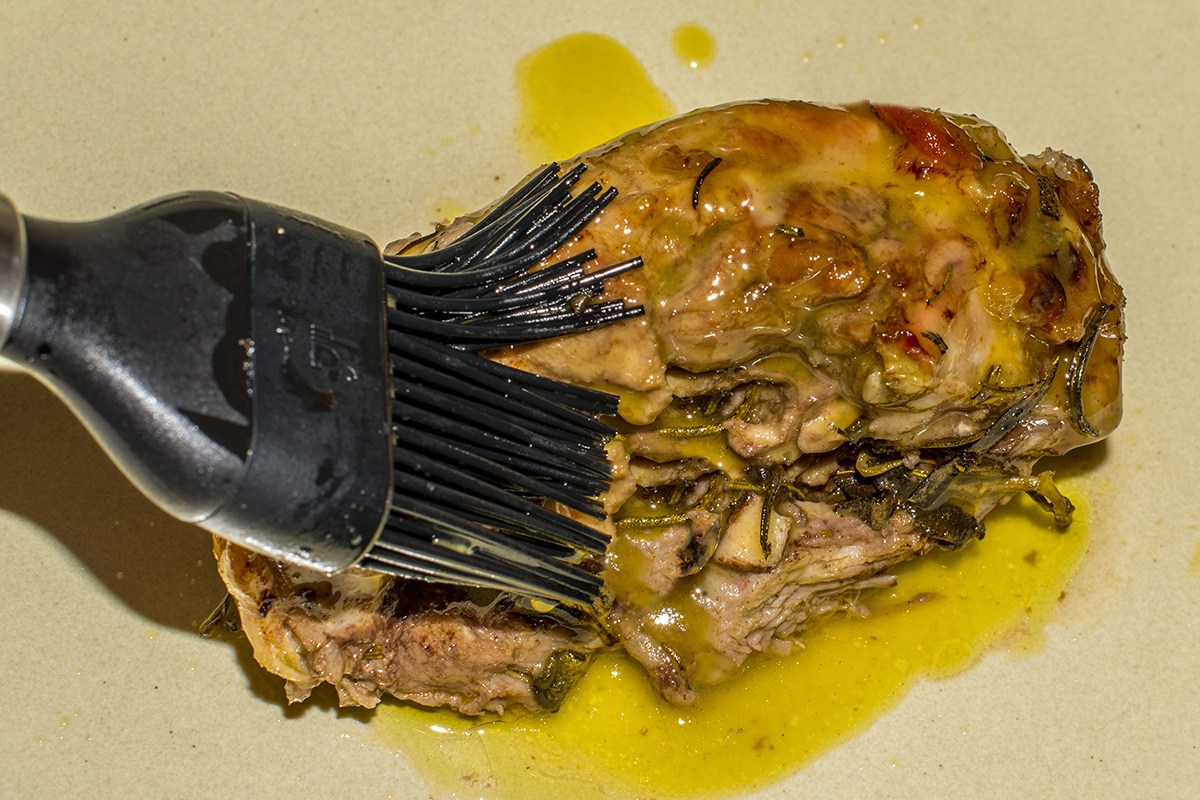 … ed eccolo condito, olio evo a parte, con rosmarino, salvia, alloro, aglio e grani di pepe nero macinati…
