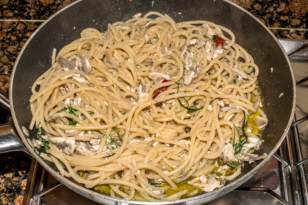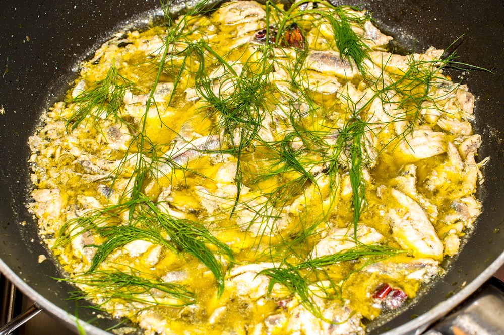 … and the anchovies will dive. The wild fennel will soon follow because cooking will take a few minutes …