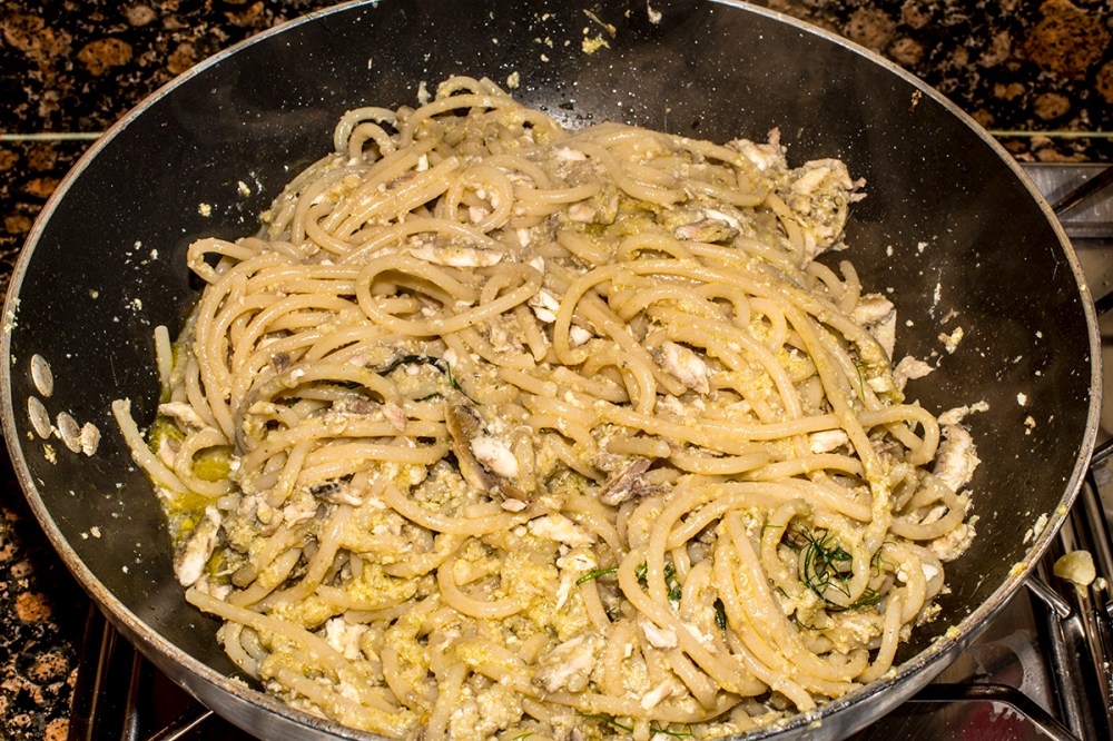 What’s missing? … hahaha … maybe spaghetti! For this preparation I have chosen you long, big and good ones! This is another variety of Senatore Cappelli pasta …