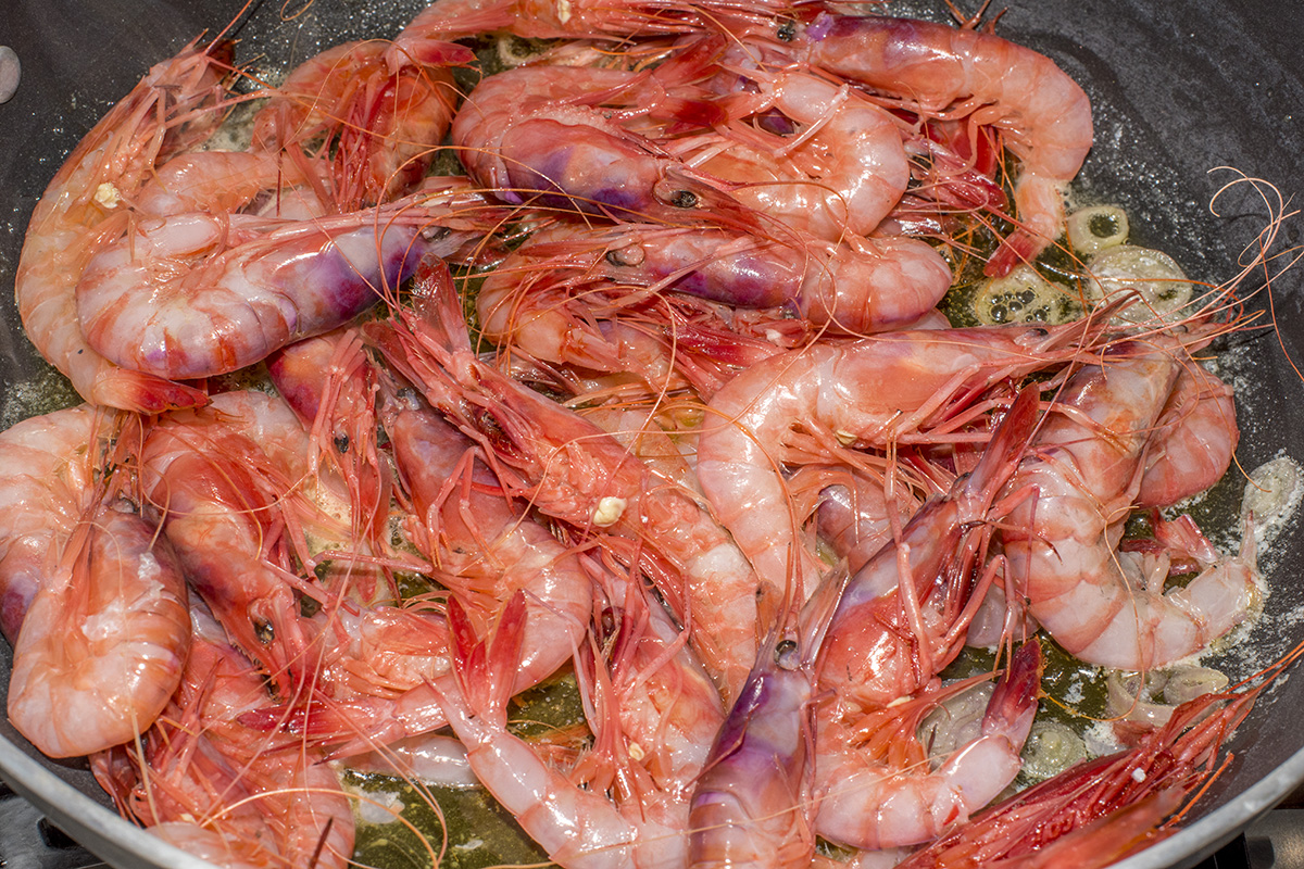 When the “half sleeves” reach half cooked, they must be drained and combined with the prawns.