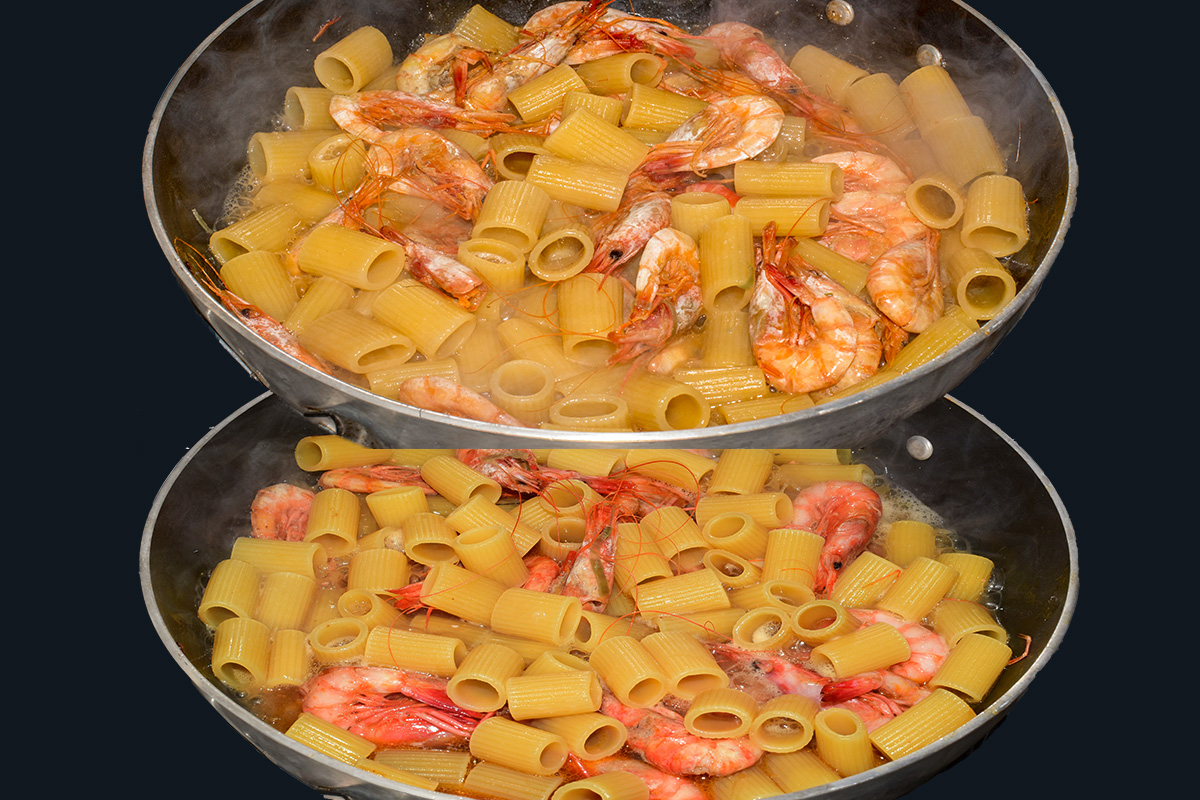 This will allow us to cook the pasta with whole prawns. They will give an excellent taste and aroma.