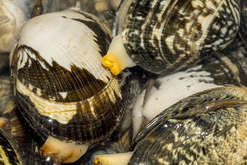 … certo che a giudicare dagli orifici dei sifoni e da quello che espellono… si direbbe che le telline vivano in acque ben più pulite…