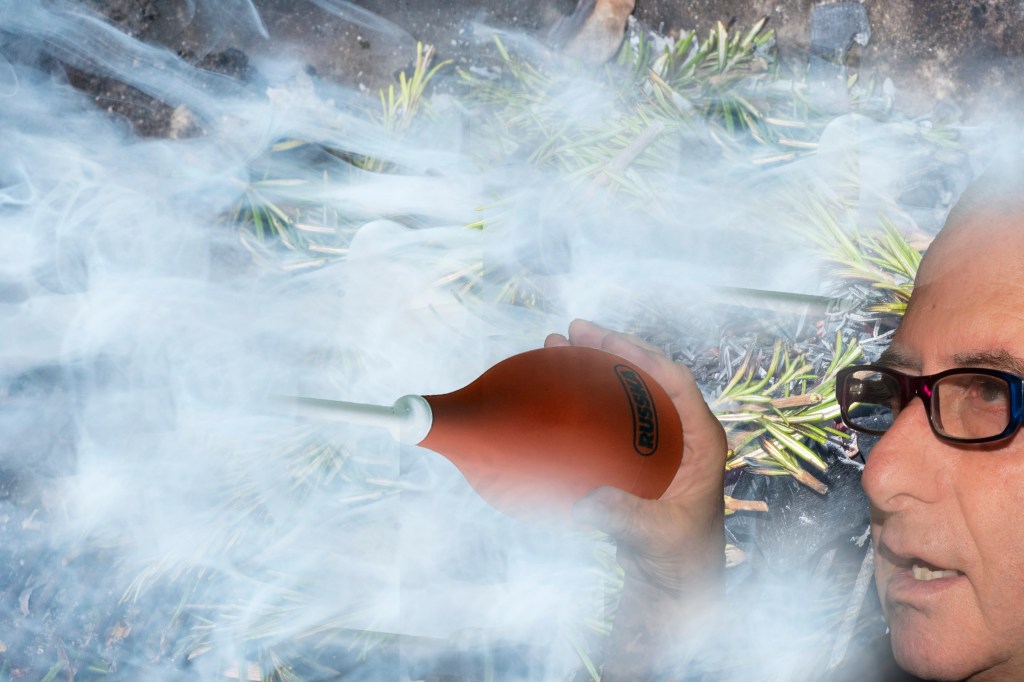 Per l’affumicatura ognuno ha la sua formula… personalmente ne ho testate alcune bruciando rametti diversi, tipo: citronella, aneto, rosmarino… alla fine il risultato era sempre lo stesso… un pungente aroma di arso. Ed allora ho deciso di utilizzare ciò che trovavo in terrazza e alla vicina Villa Sciarra…
