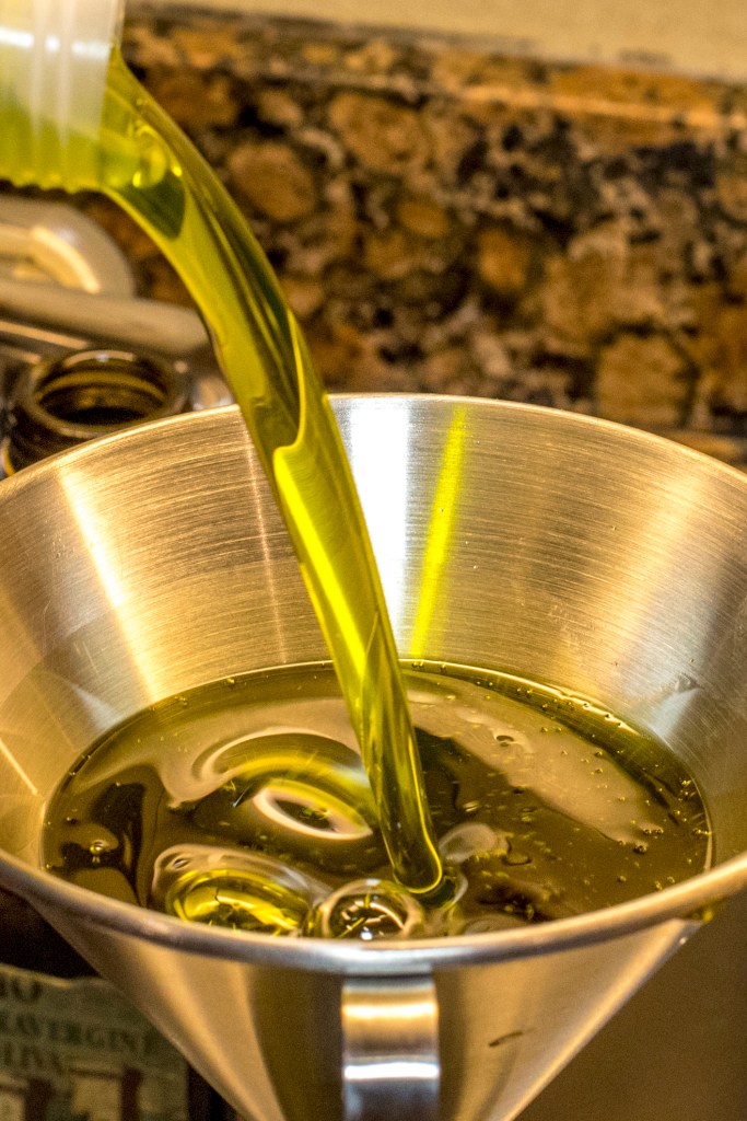 Non sul pane; la bruschetta è ottima ma l’assaggio si fa con il solo olio ed in un bicchierino scuro ( bleu p.es) che ne mascheri il colore. Esso non deve influenzare il giudice: il verde carico, infatti, non è sempre sinonimo di qualità. Deve, inoltre, essere sorseggiato un po’ caldo perché si liberino gli aromi più volatili. È, anche, necessario mantenerlo una manciata di secondi nelle fauci perché sarà l’olfatto a fornire molte informazioni.