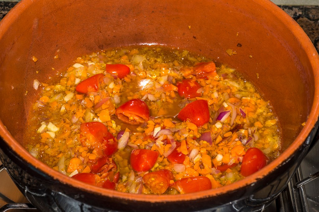 È giunto il momento di versare i nostri bulbi, unitamente a sedano e carota, in olio evo…