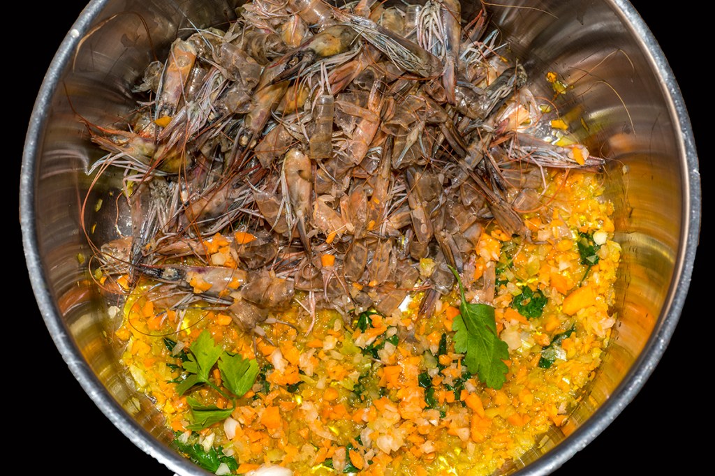 … servirà a preparare un fumetto con le teste ed i carapaci dei crostacei…