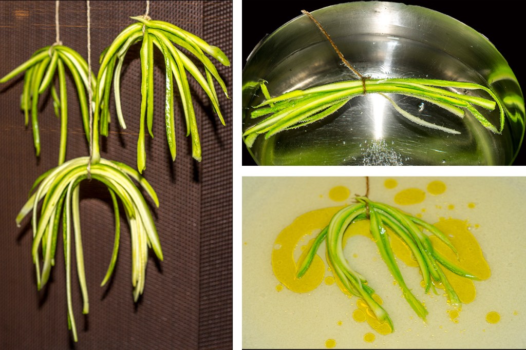 La sbollenteremo, poi, in acqua salata per renderla più facilmente accettabile dal palato e la appenderemo per cominciarle a dare una forma. Dopo un pò la passeremo in olio evo e limone.