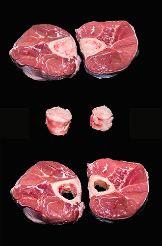 Ed allora, prima di infarinarli, ( per la ricetta ➙ v.”l’òs büs”) priviamoli del midollo che metteremo da parte per il risotto…